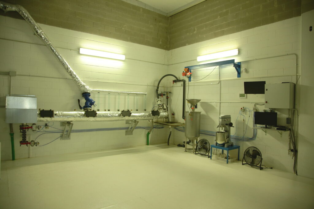 Dentro del contenedor se encuentran cinco tubos interconectados entre ellos y a una serie de elementos mecanicos y eléctricos similar al anterior.
