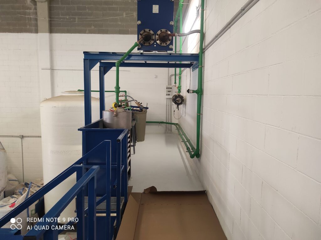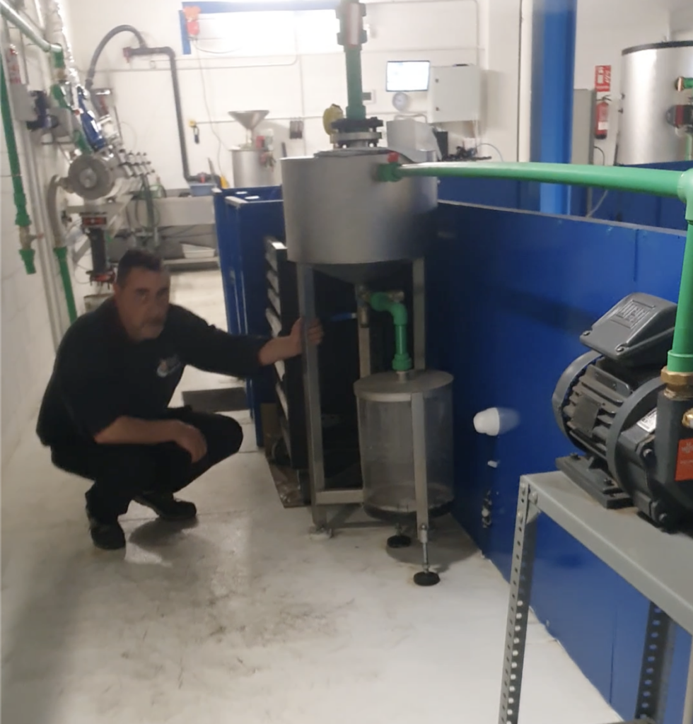 Foto de caldera marca H20 renovables y depósito de almacenaje de biomasa.