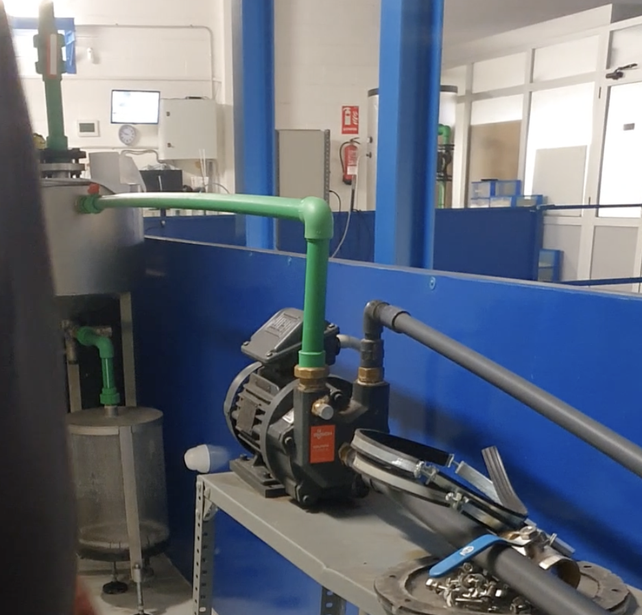 Foto detalle donde se aprecia pequeño tanque con bomba conectados a un pequeño depósito.